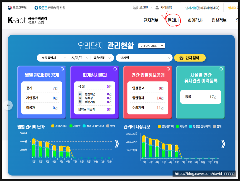 여기 클릭 : K-apt 공동주택관리정보시스템