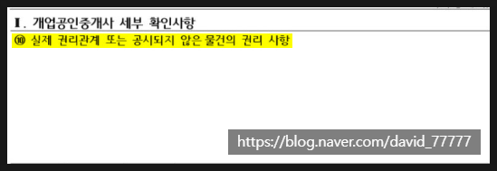 확인설명서 "10 실제 권리관계 또는 공시되지 않은 물건의 권리사항" 란에
