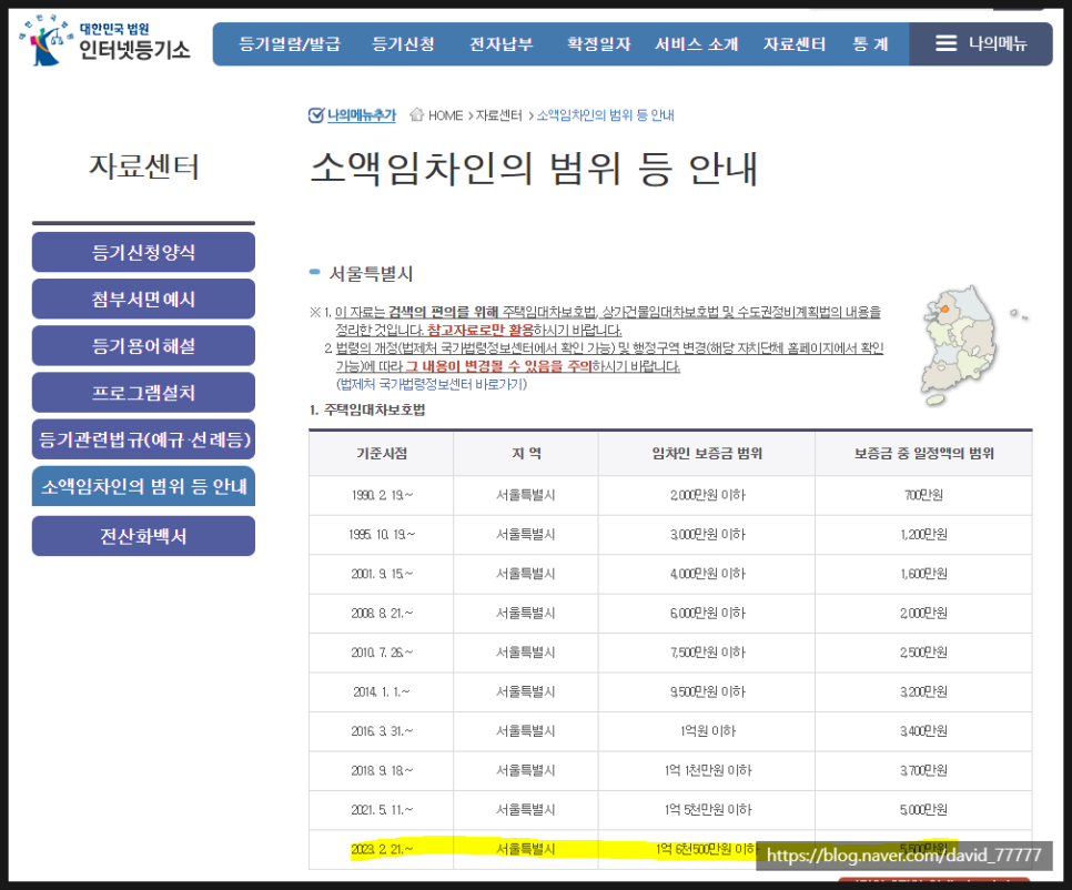 서울을 기준으로 소액임차인의 범위 기준시점은 2023.2.21 이후이므로