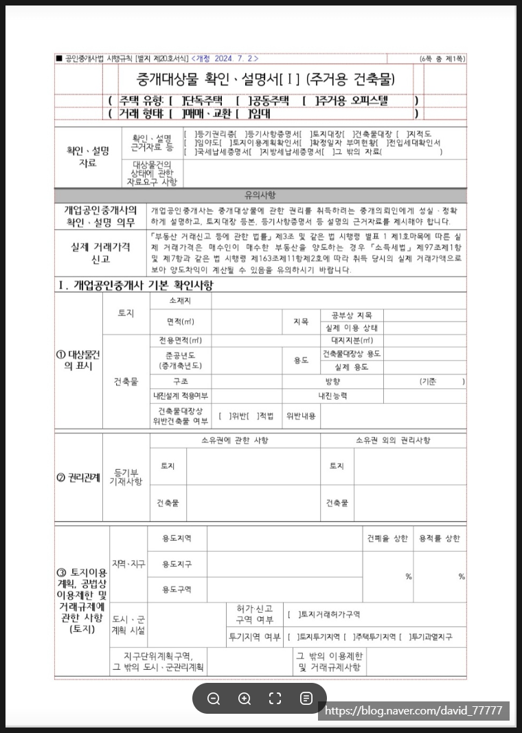오늘 포스팅은 변경된 확인설명서 서식 중