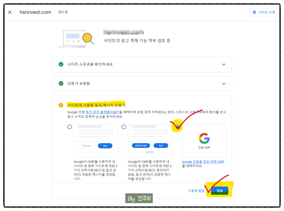 드디어 구글 애드센스에 승인을 요청하는 단계입니다.