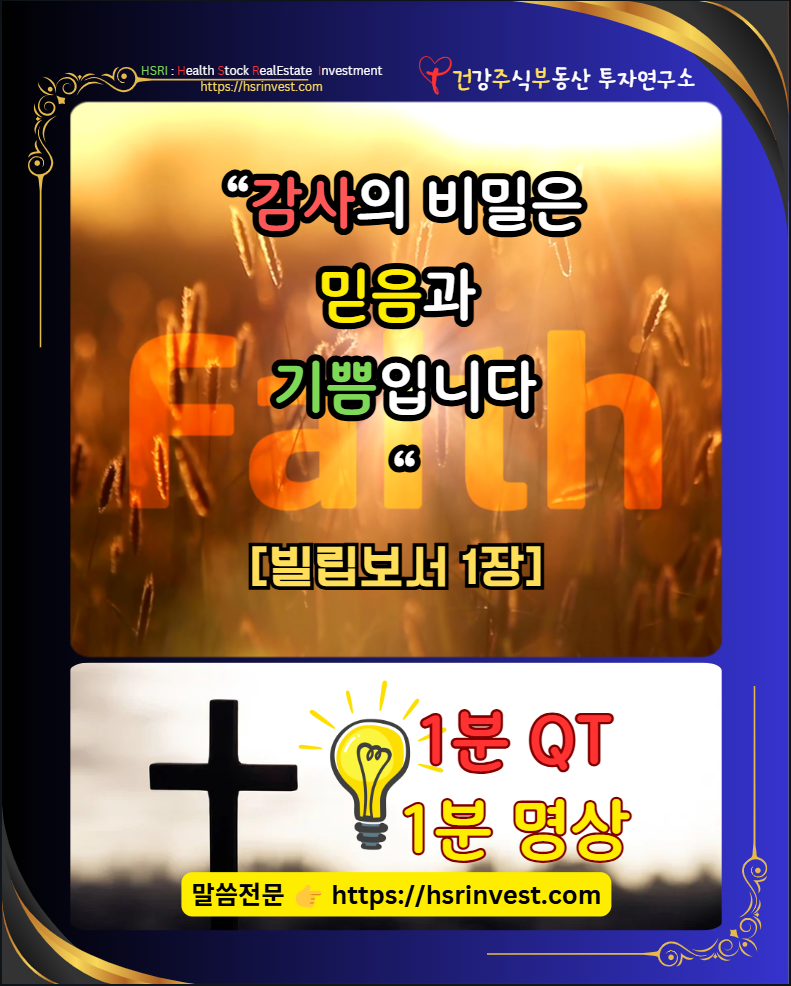 | [빌립보서1장 묵상] 감사의 비밀은 믿음과 기쁨입니다 (1) | 2025.04.04 |