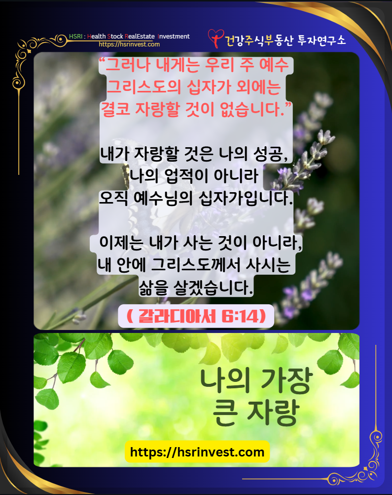 내가 자랑할 것은 나의 성공, 나의 업적이 아니라 오직 예수님의 십자가입니다.