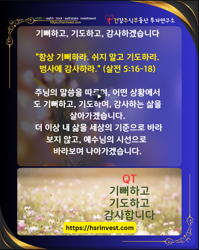 주님의 말씀을 따르며, 어떤 상황에서도 기뻐하고, 기도하며, 감사하는 삶을 살아가겠습니다.