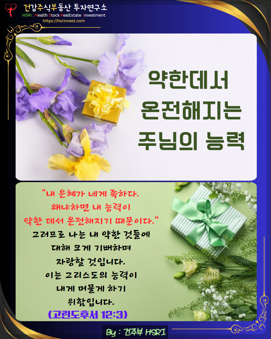 샬롬~ 건강 주식 부동산 전문가 건주부입니다.