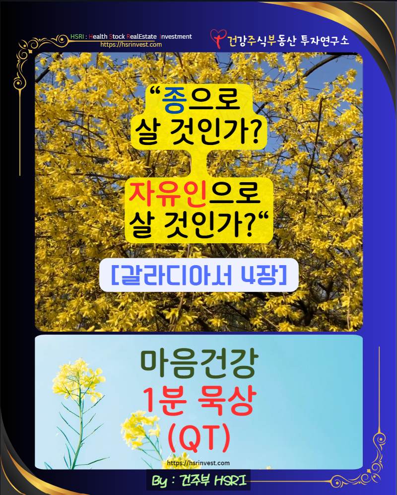 | 마음 건강 - 믿음으로 의롭게 되고, 사랑으로 행하라 : 갈라디아서 3장 묵상(QT) (4) | 2025.03.25 |