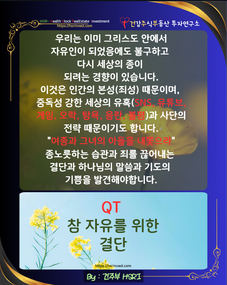 처음에는 어려울 수 있지만, 말씀과 기도 속에서 하나님이 주시는 기쁨을 발견할 때 진정한 자유를 누릴 수 있습니다.