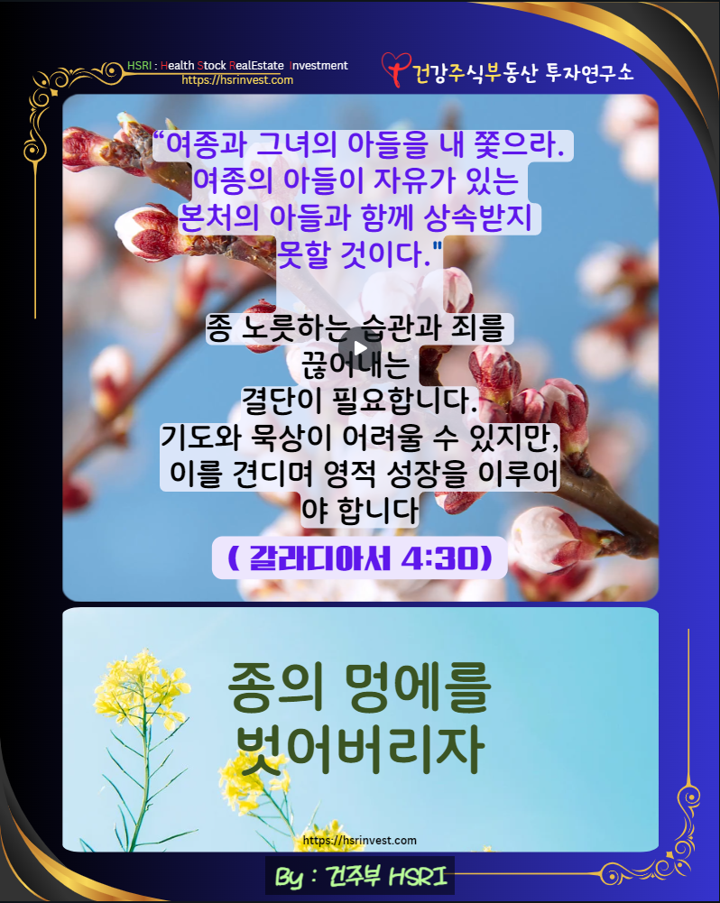 세상의 종노릇에서 벗어나 하나님의 자녀로서 자유롭게 사는 삶, 함께 실천해 보아요!