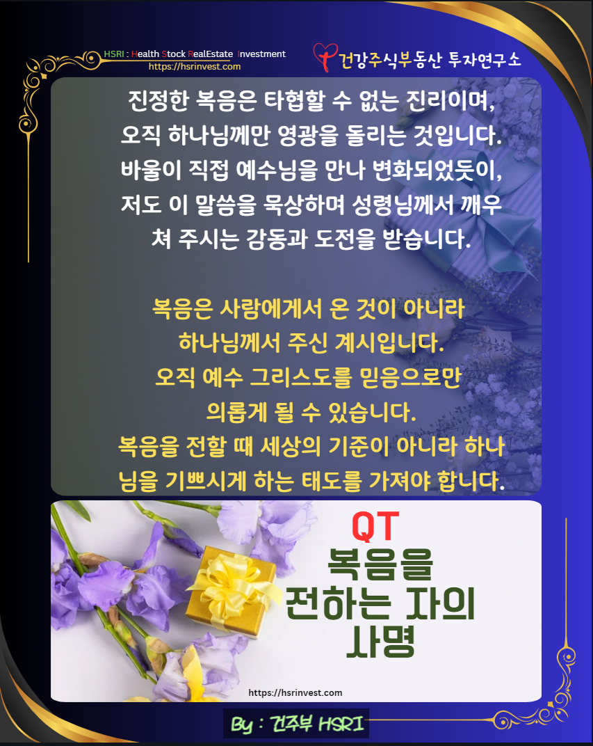 오늘도 하나님께서 주신 이 귀한 복음을 담대히 전하는 하루가 되기를 소망합니다.