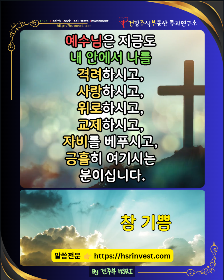 예수님은 오늘도 조용히 여러분을 위로하시고, 격려하시며, 사랑으로 품고 계십니다.