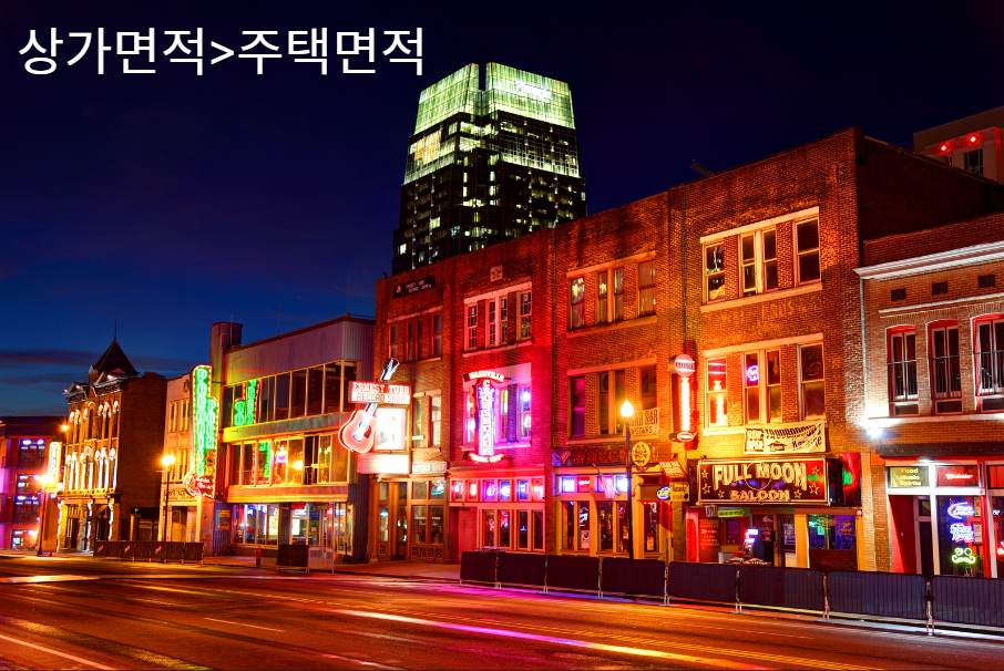 주택면적과 상가면적 둘 중 큰 쪽을 따르면 됩니다