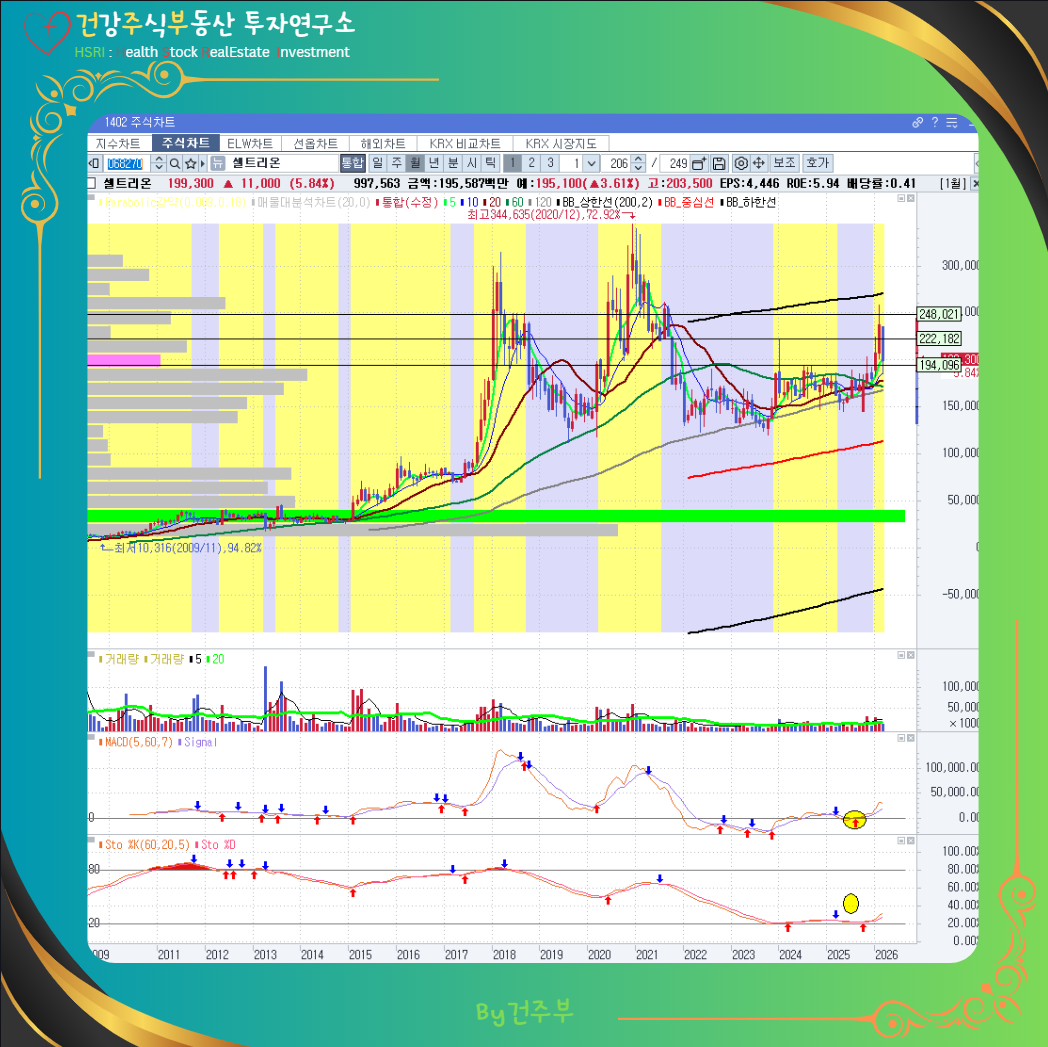 3월 24일 기준 셀트리온 주가(월봉기준) (글 그림 : 건주부, 그림 출처: Canva)