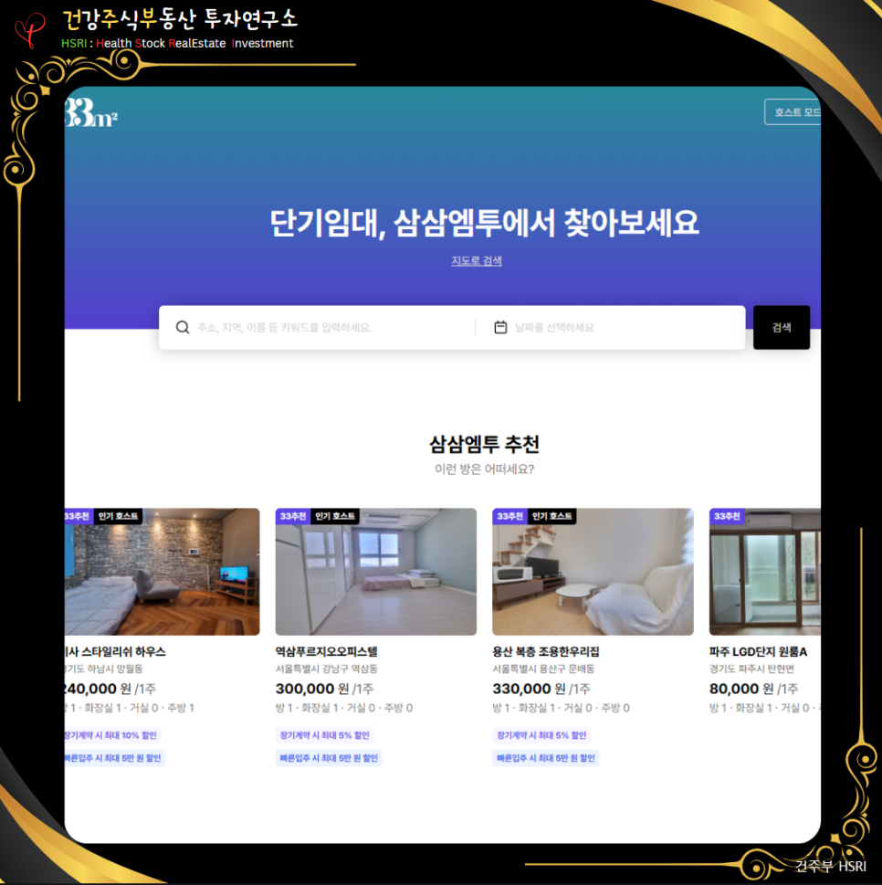 단기 임대 플랫폼 - 삼삼엠투