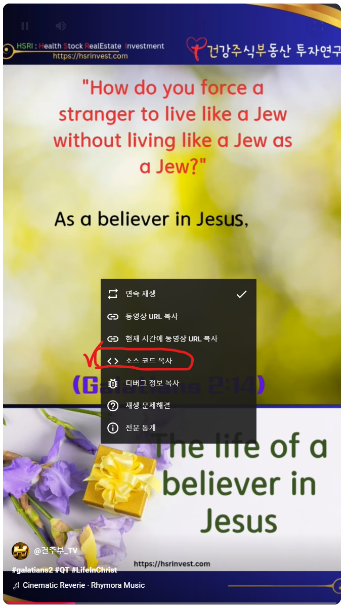 (1) 유튜브 영상에서 "<>소스코드 복사"
