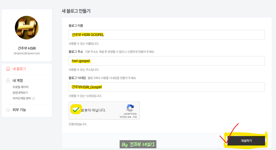 3. 블로그 이름, 블로그 주소, 블로그 닉네임을 작성합니다.