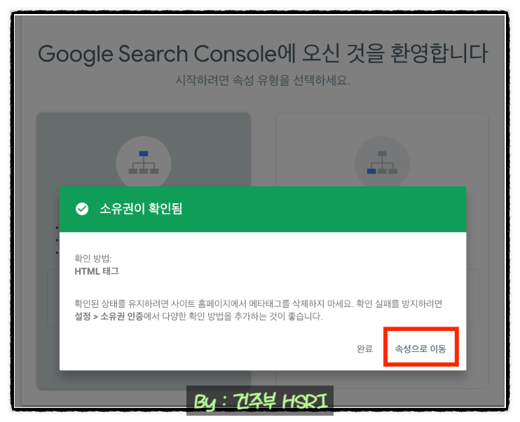 ◆ 다음과 같이 소유권이 확임 됨이라는 창이 뜨면 "속성으로 이동"을 클릭합니다.
