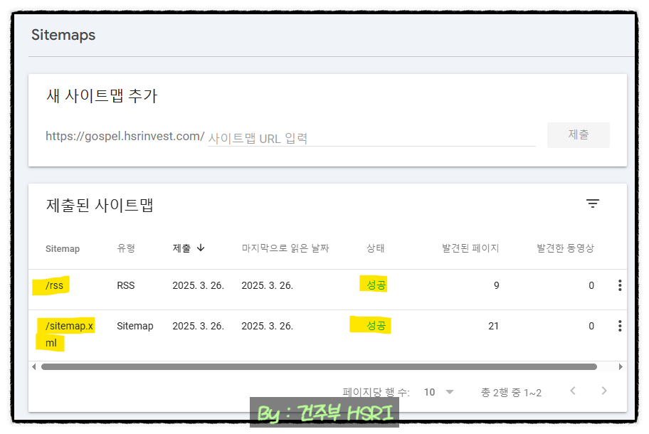 sitemap.xml은 웹사이트 내의 모든 목록을 나열한 파일이라고 보시면 됩니다. 그래서 저렇게 사이트맵을 제출하게 되면 크롤링 과정에서 내 블로그 글이 빠지는 부분 없이 색인이 되게 만들어 줍니다.