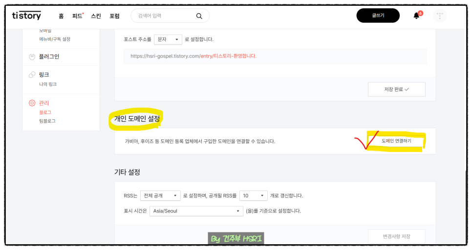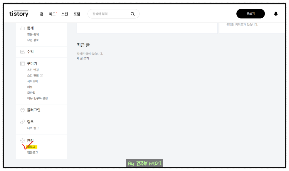 ▶경로 : 티스토리 관리 홈 > 관리 > 블로그