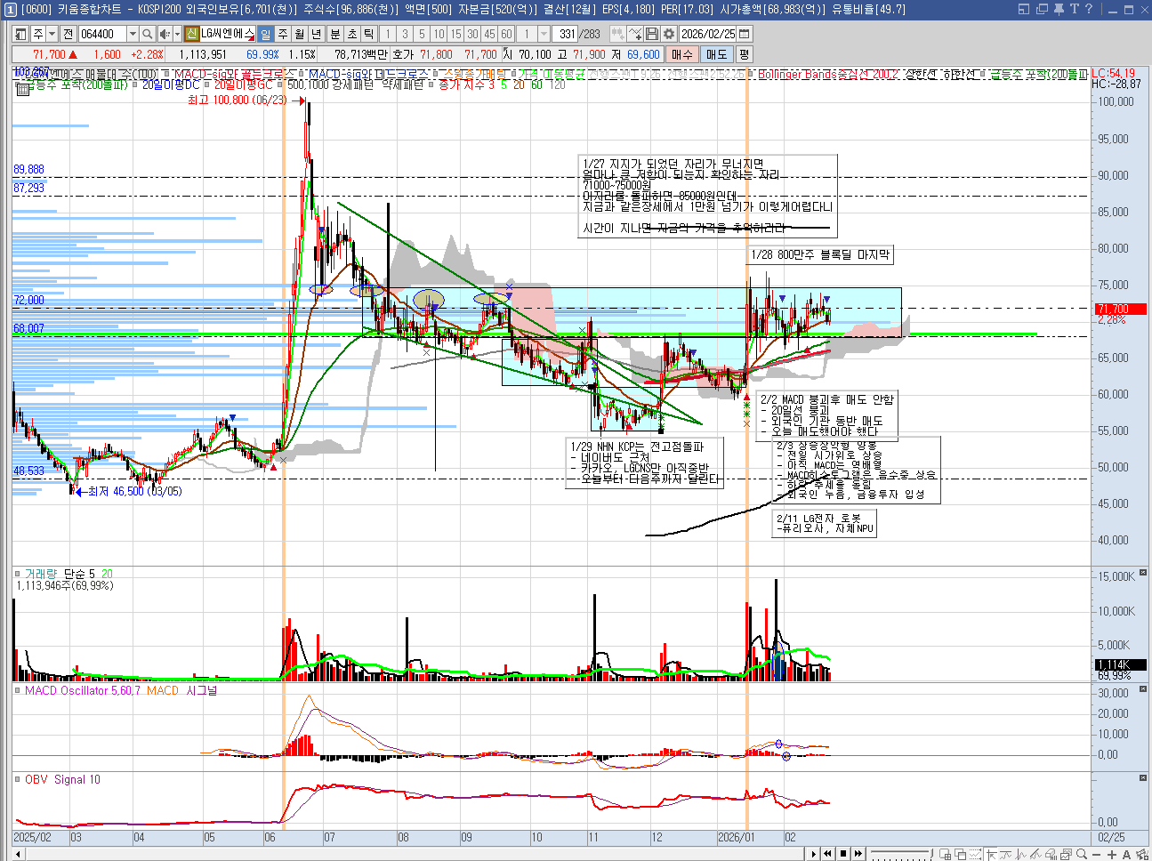 아마 개미들은 이러한 불장에서 LG씨엔에스를 가지고 있기가 정말 힘들어요 차트 분석과 LGCNS의 재료(AI,데이터센터,피지컬AI등)이 실제 반영되는 시점과 세력들의 현재 심리를 분석해봅니다.