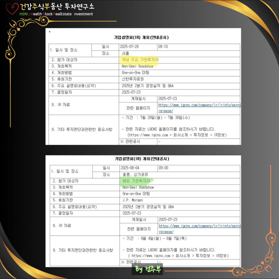 | LGCNS(LG씨엔에스) NDR(No Deal Roadshow)는 무엇인가? (4) | 2025.08.03 |
