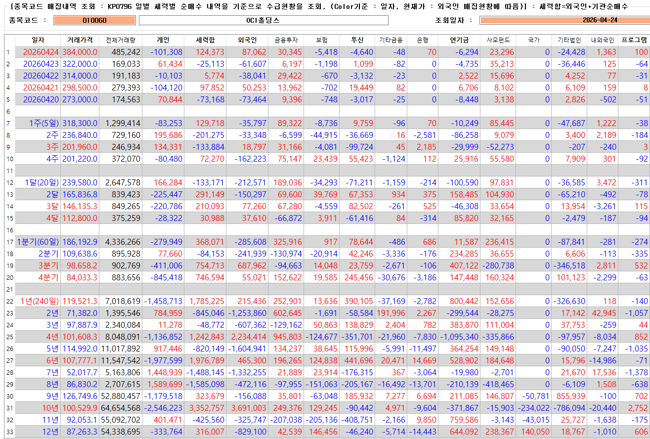 OCI홀딩스 세력별 수급 분석을 통한 향후 대응전략